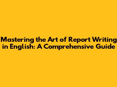 Mastering The Art Of Report Writing In English